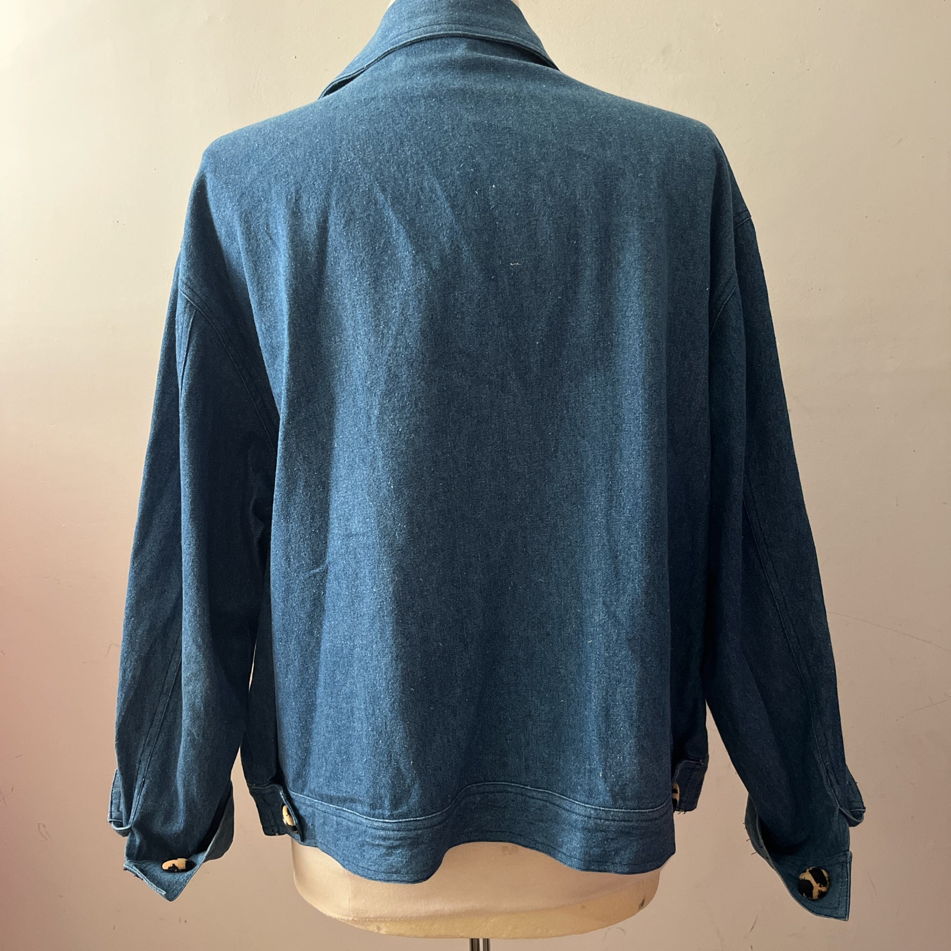 This stylish jacket blends dark indigo denim with honey leopard velvet for a chic 90s-inspired look. Lightweight and perfect for layering, it pairs effortlessly with dark denim and boots, making it a truly distinctive addition to your wardrobe.