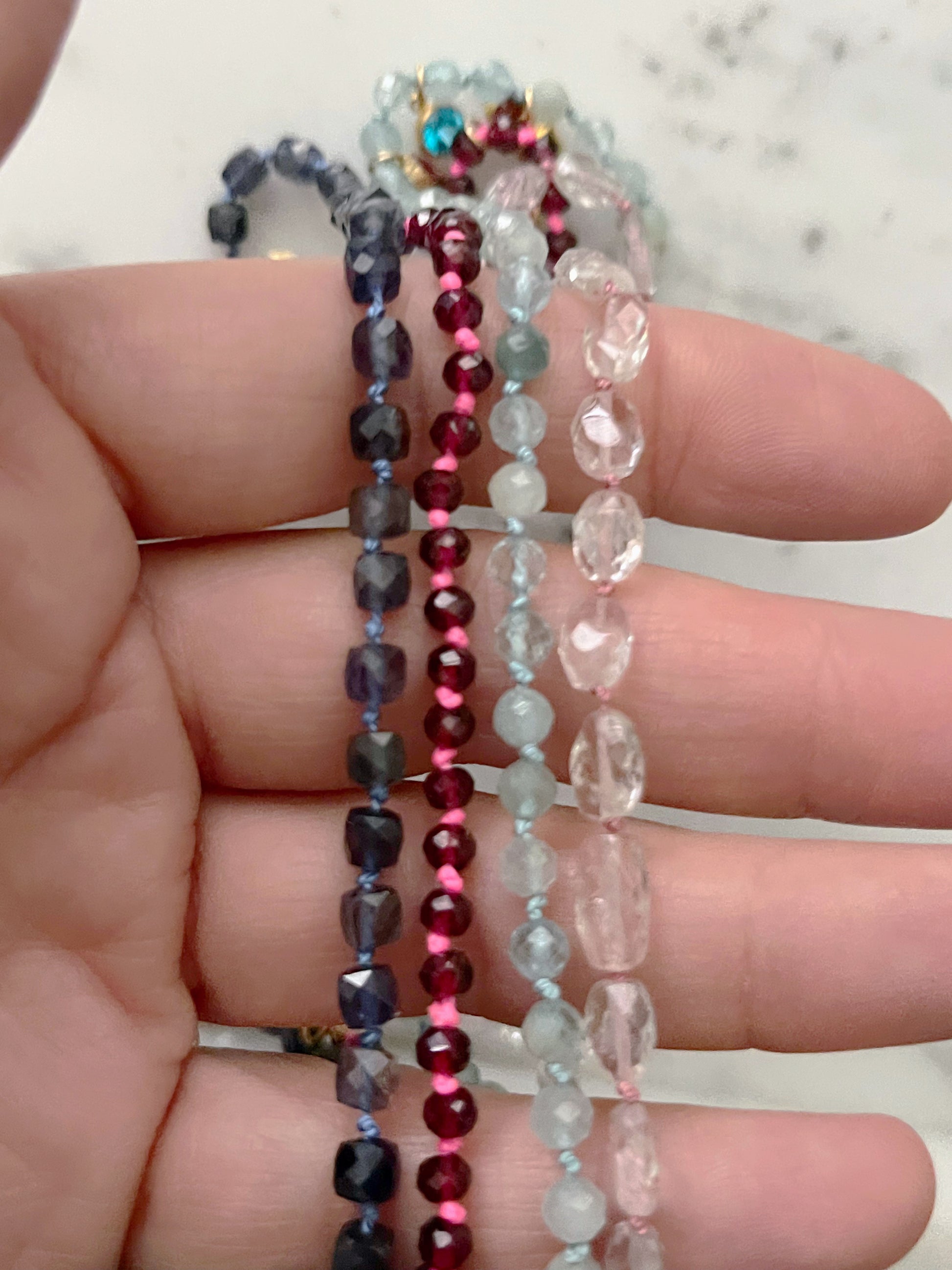 These 90s-inspired hand-knotted necklaces feature semi-precious beads, a durable 14k gold-filled clasp, and sparkling crystal charm details. Vintage-inspired and timeless, they offer a high-quality, lightweight design perfect for everyday wear, layering, and gifting. Ideal for lovers of minimalist jewelry, Y2K fashion, and handcrafted accessories.