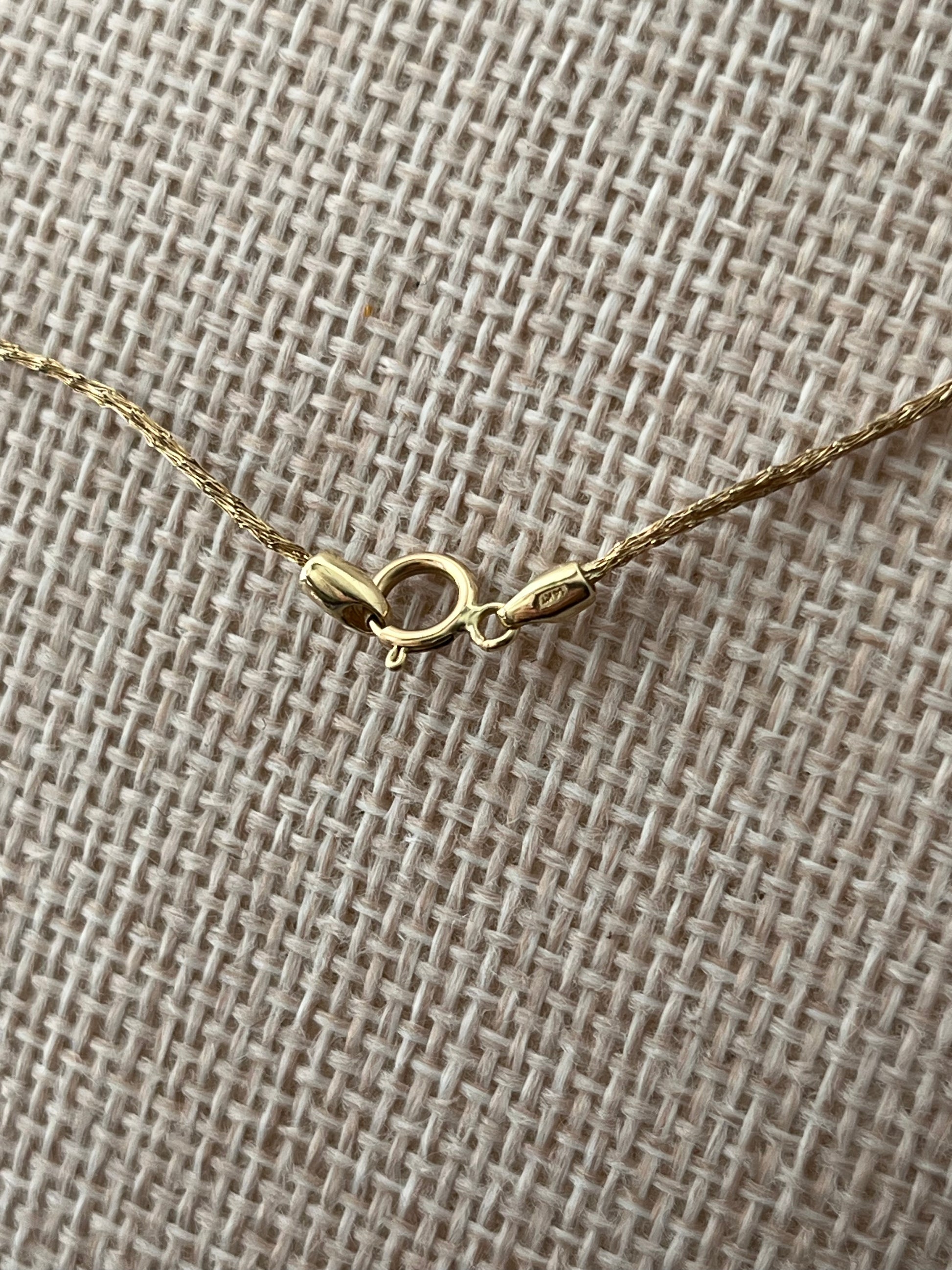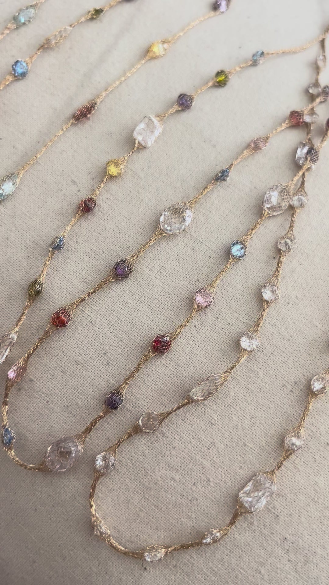 Uniquely crafted with a delicate fishnet weave, this necklace features crystal stones that shimmer with subtle elegance. Made in Italy and stamped 14k solid gold, it offers refined sophistication and is ideal for layering with other jewelry pieces.