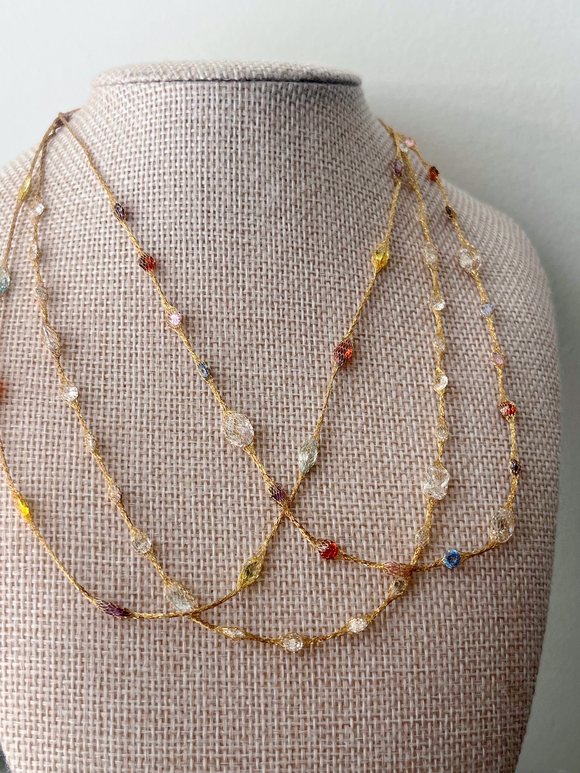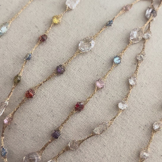 Fishnet Fine Gold 14K Crystal Wrapped Necklace| Marquise Stones