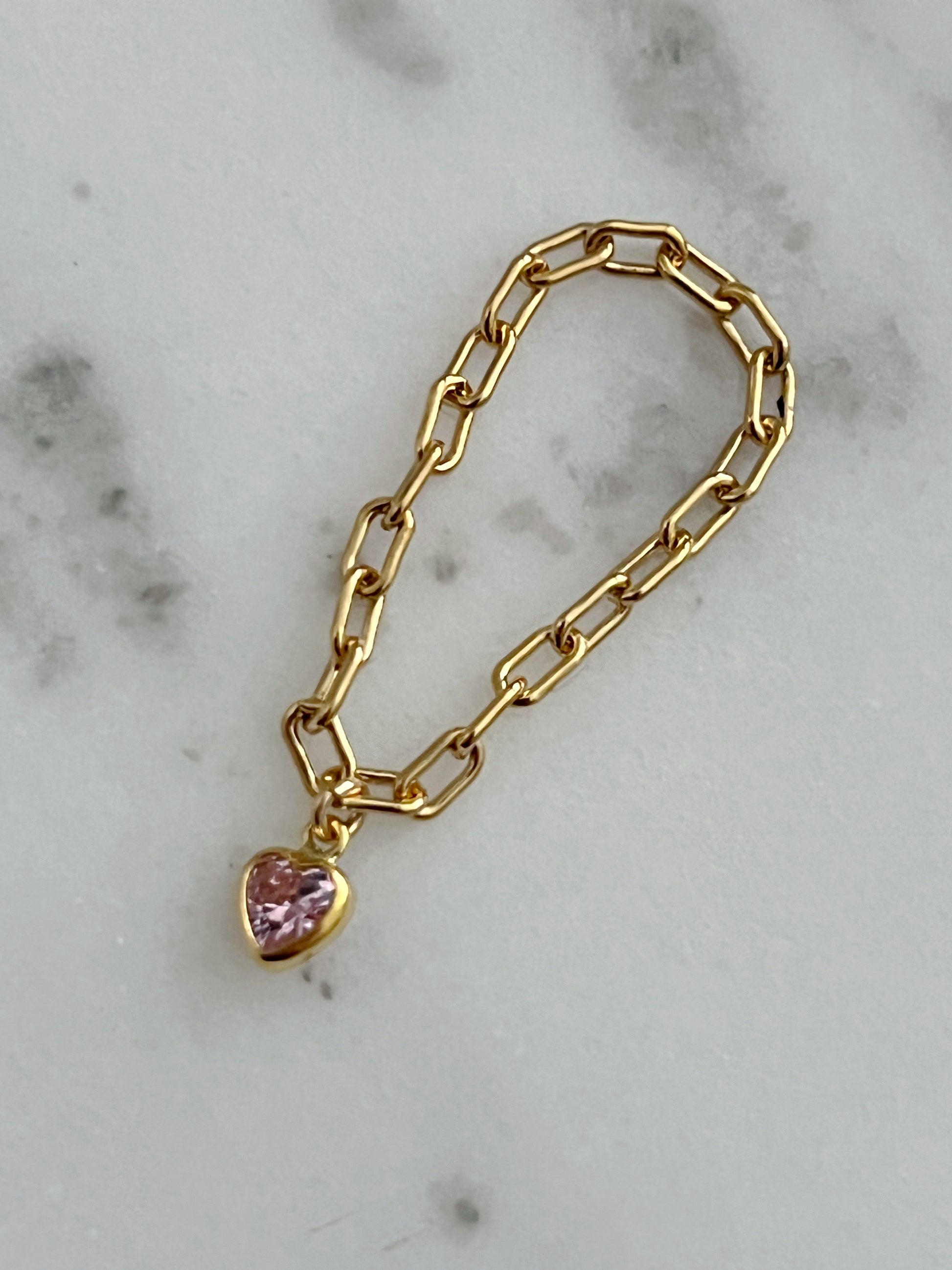 Lucky Charm Ring Paperclip Chain Pink Heart| Size 7