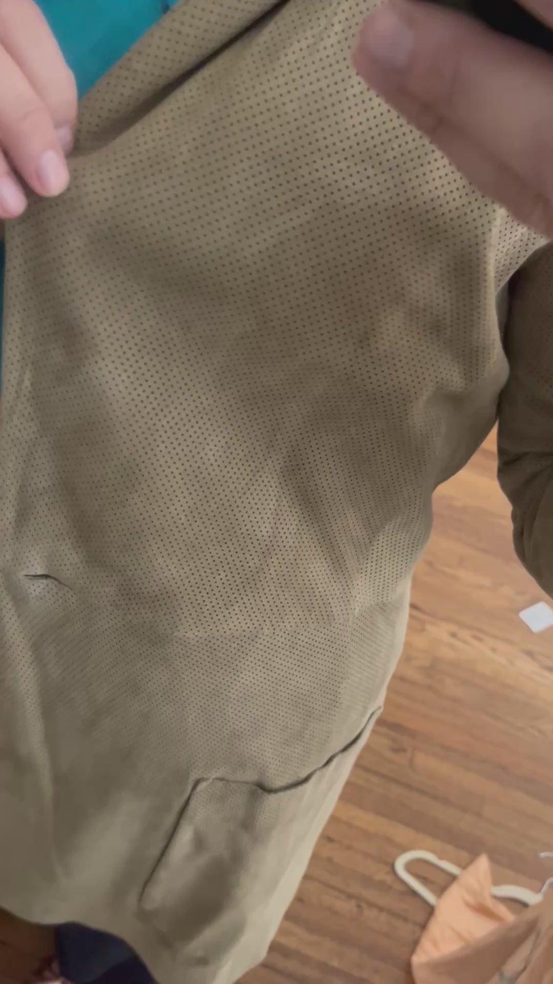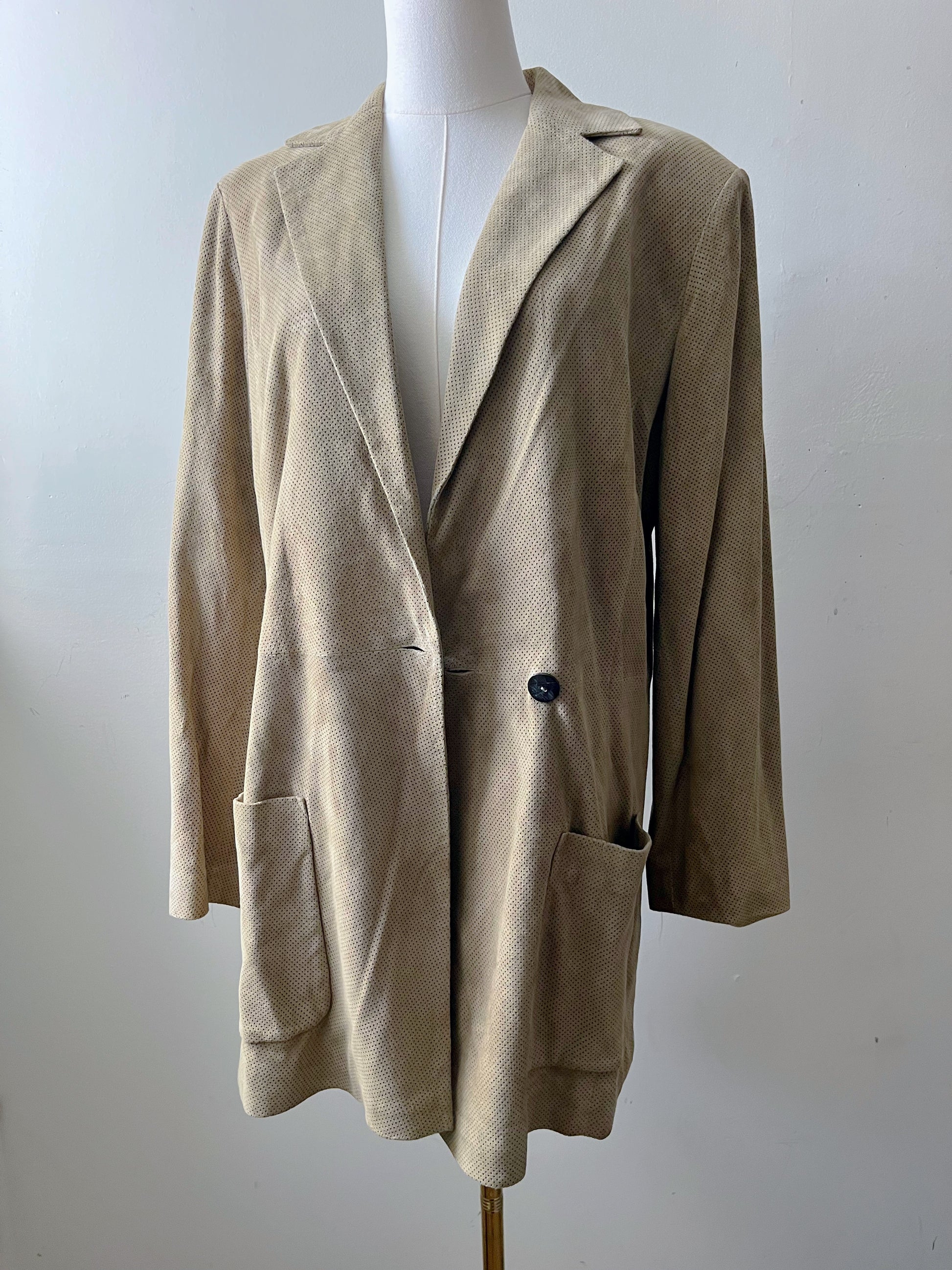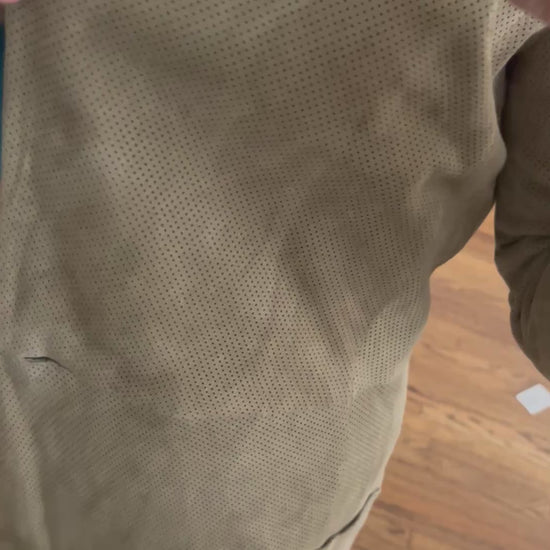 Perforated Cashew Butter Suede Mid Length Jacket Coat| Medium