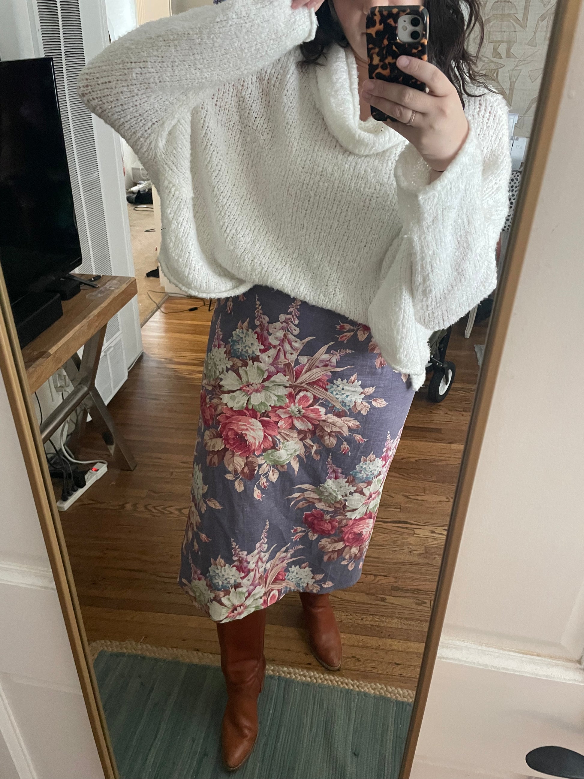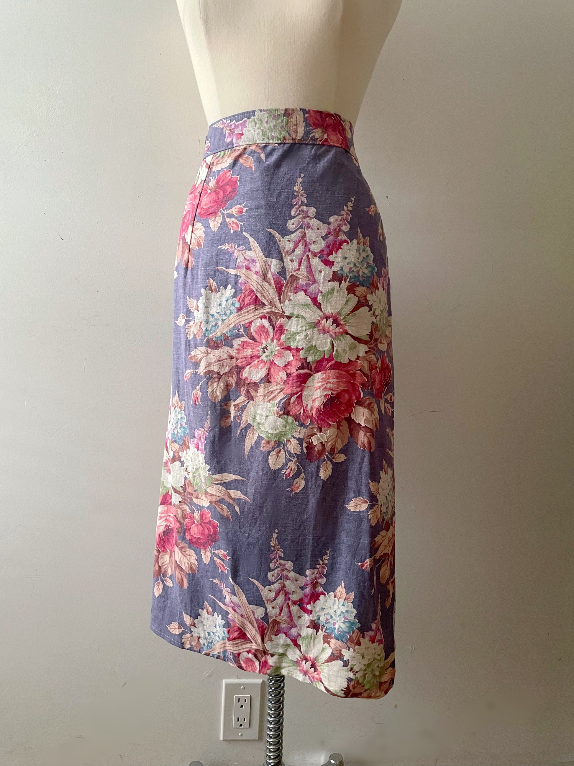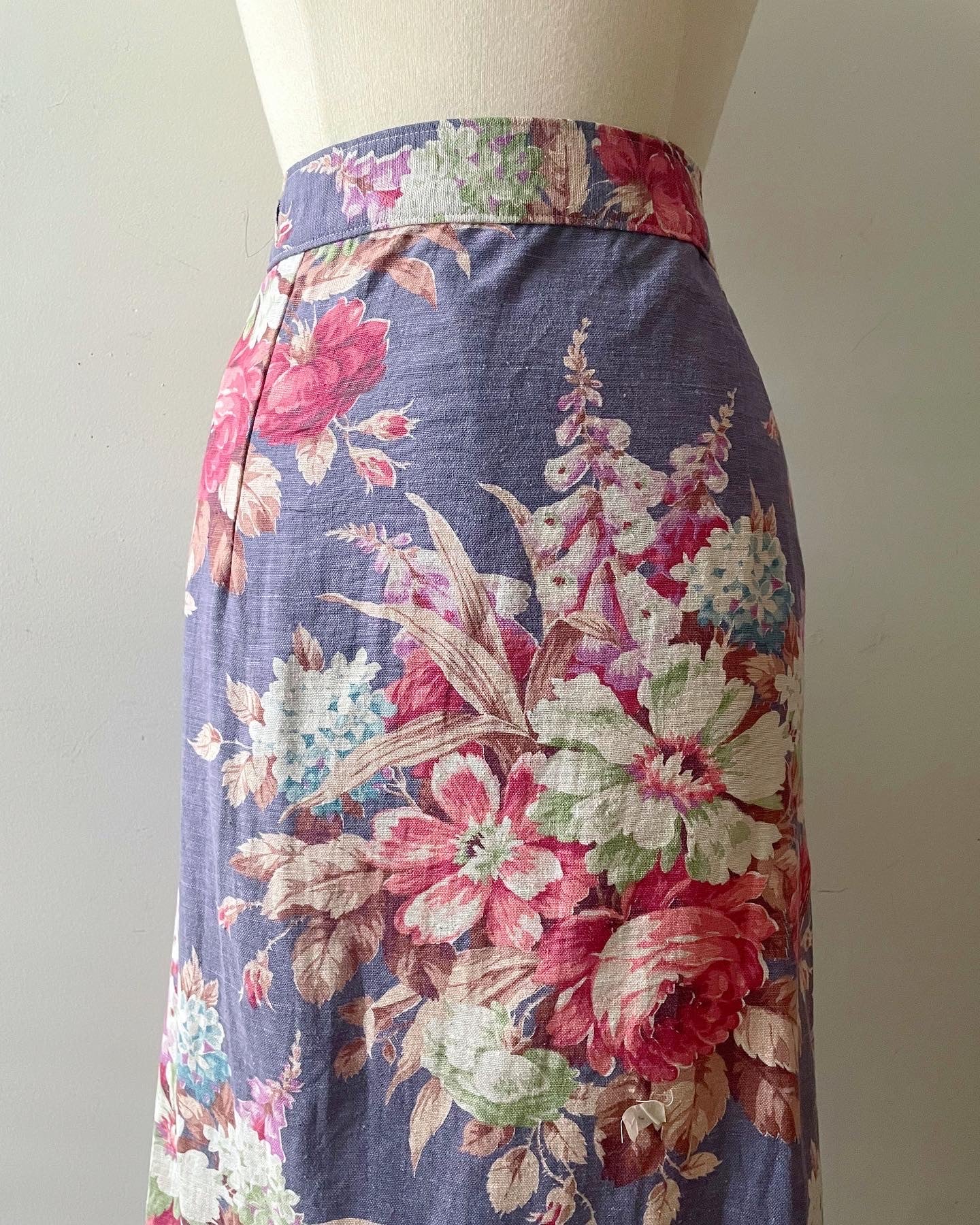 Upcycled vintage Ralph Lauren fabric in a flattering midi length skirt. Wear it with a silk cami, a slim mock neck, a chic body suit or a blazer. These are meant to be seen.