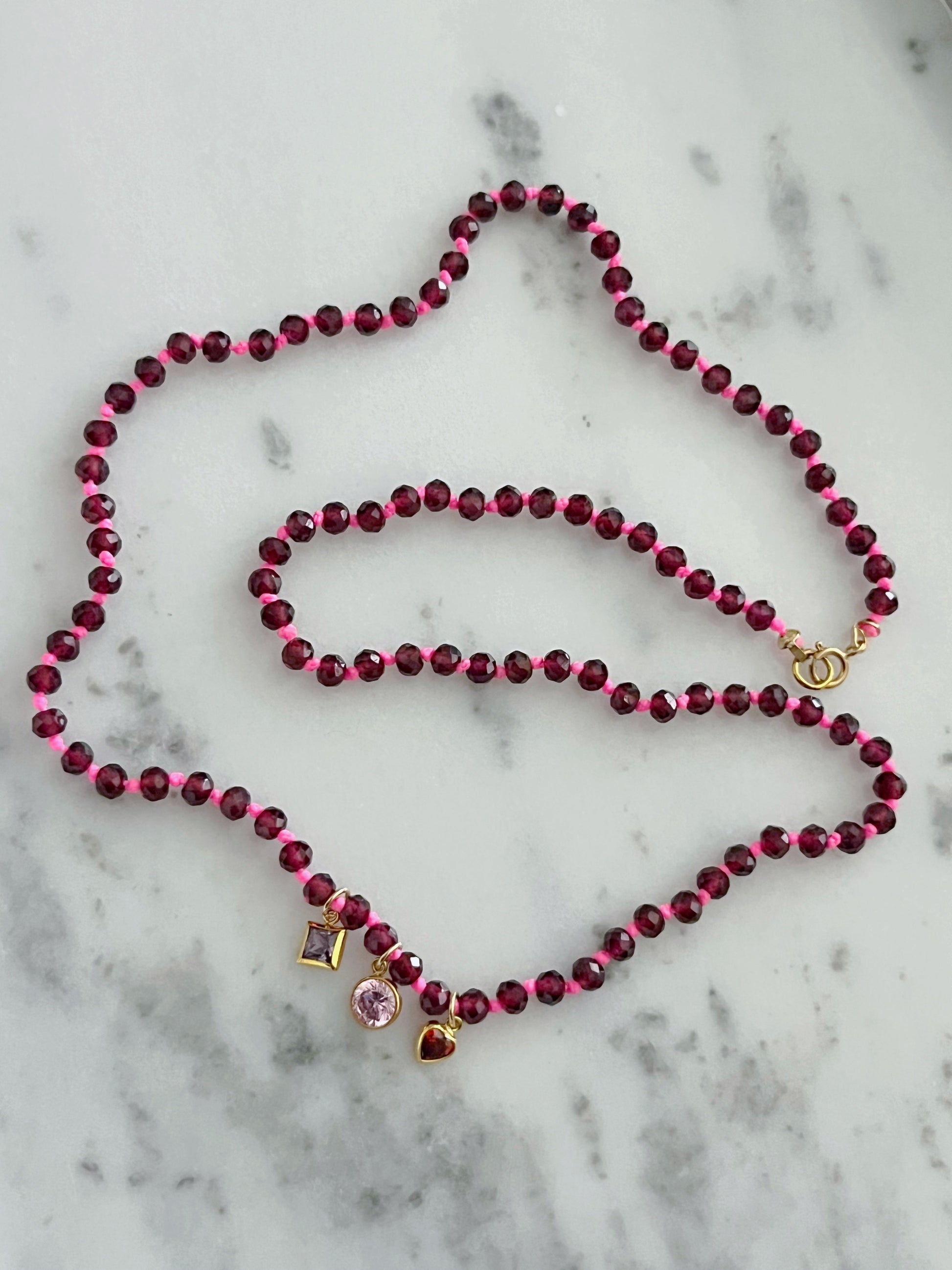 These 90s-inspired hand-knotted necklaces feature semi-precious beads, a durable 14k gold-filled clasp, and sparkling crystal charm details. Vintage-inspired and timeless, they offer a high-quality, lightweight design perfect for everyday wear, layering, and gifting. Ideal for lovers of minimalist jewelry, Y2K fashion, and handcrafted accessories.