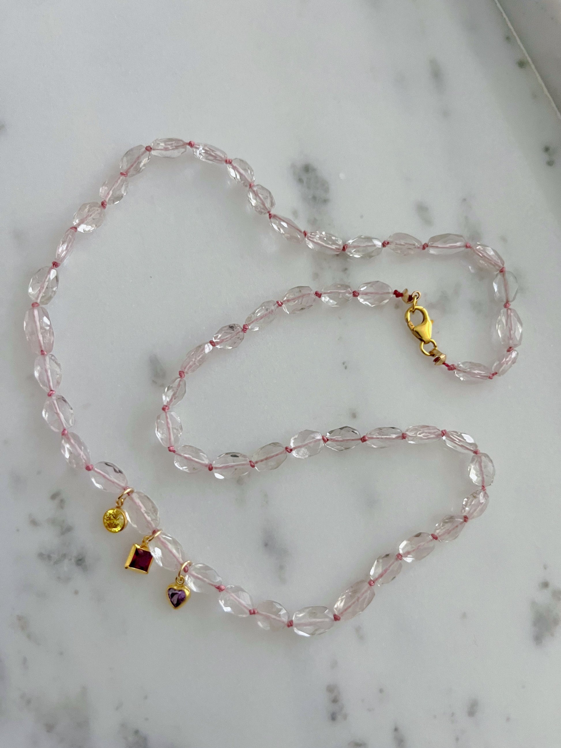 Rose Quartz Silk Knotted Lucky Charm Necklace