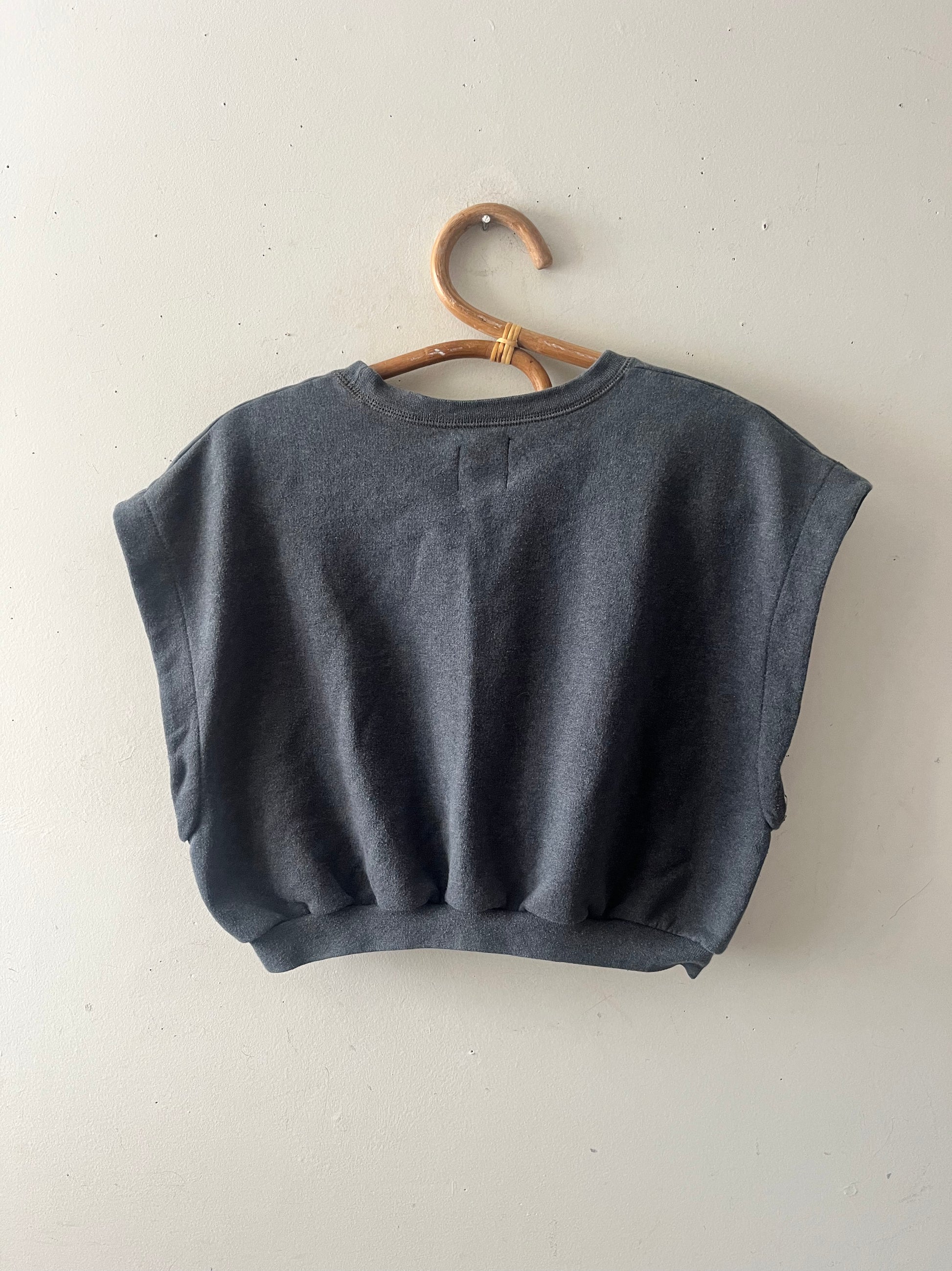 This upcycled sweatshirt features a sleek, structured silhouette embodying effortless modern minimalism. Ideal for everyday casual wear or paired with a more refined piece for a playful touch.